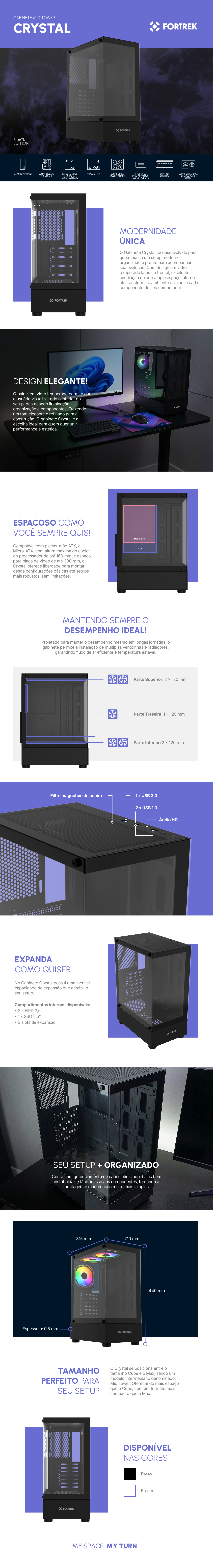 Se você procura por gabinete gamer com vidro temperado ou um gabinete com excelente airflow, o Crystal Fortrek é a escolha certa para montar um setup moderno, funcional e durável.