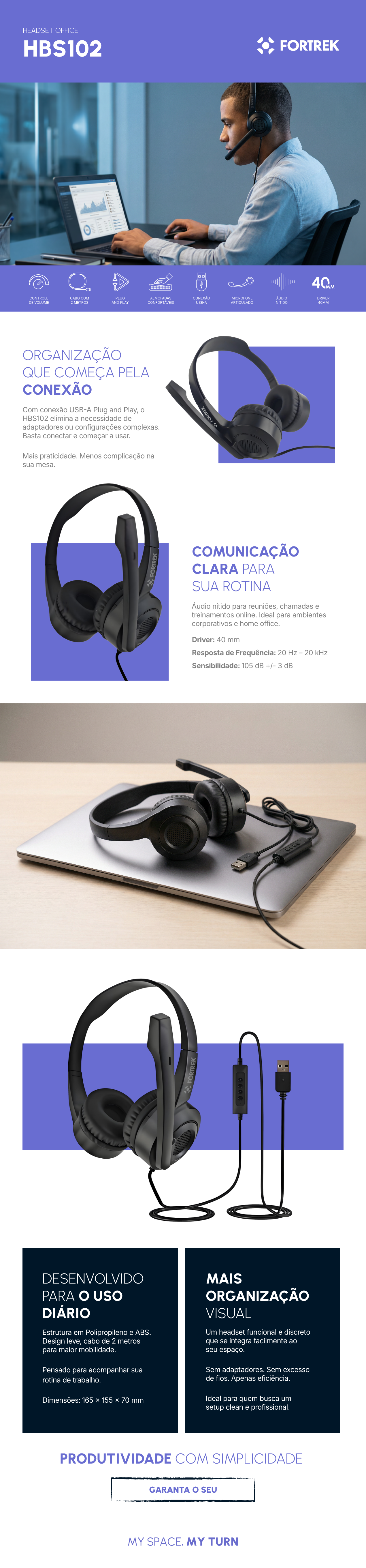 Se você precisa de um headset USB para reuniões online, headset profissional para escritório ou headset para home office com áudio de qualidade, o HBS102 da Fortrek entrega desempenho e praticidade na medida certa.